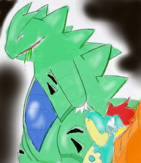 いたわるかのようにアリゲイツの尻尾を軽く掴み、口元へ持っていく。