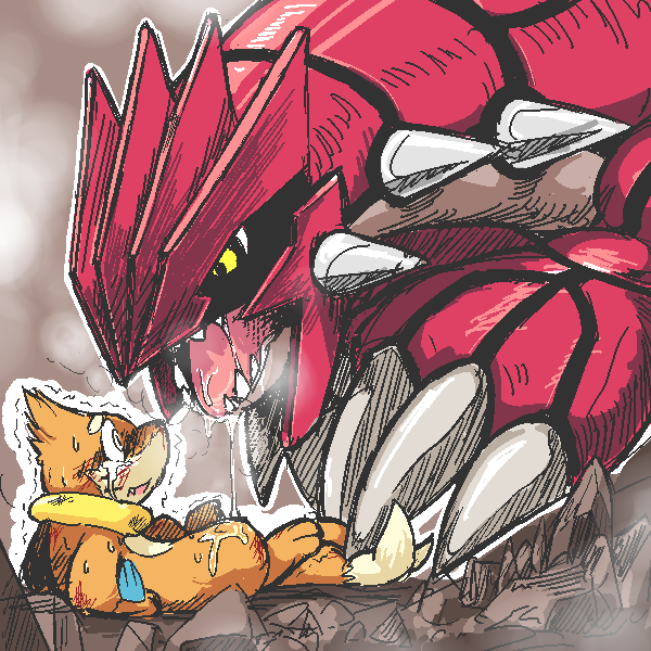だが、目の前に居るそのポケモンは獲物を見る目で自分を睨み、その巨大な手に生えている爪で自分の尻尾を抑えていることから、自分を逃がすつもりはないのが見て取れた。 そして、その巨大な口から一筋の唾液が自分の身体に垂れていって・・・生暖かく、ヌメっとした感覚が垂れた場所から広がり、その感覚が更に恐怖を倍増させる。 恐怖に包まれ、逃げようにも身体が言う事を聞かず、絶望的な状況だった所に、更に追い討ちがかかるようにして、その巨大な舌が身体を舐め上げる。 思わず叫び声を出そうとした瞬間、息苦しさと強烈な圧迫感が腹部を襲い、出そうとした声は呻き声となり漏れていく。・・・柔らかく、そして怪しく蠢くクッションのようなそれを感じた瞬間に、声が聞こえてくる。 「・・・どうだ?俺の口の中は・・・快適であろう?」 『んきゅ・・・ぁ・・・ぁっ・・・・・・はぅ・・・』 クク、と笑い声が続く。が、ブイゼルはグラードンの舌が自分の身体を蹂躙して行く度に感じる、乱暴で柔らかな感覚に悶え苦しんでいた為か、聞こえていない様子だった。 そんな様子を感じてか、グラードンはその小さな身体を弄ぶかのようにゆっくりと、執拗に舌をその身体に這わせ、呻き声と共に溢れてくるその味を堪能していく。 『・・・・・・ぃ・・・ゃ・・・だぁ・・・!』 『んぐぅっ!?』 最後の抵抗と言うべきか、ブイゼルはグラードンの口内にありながらも体内にあるありったけの水を溜めて【みずでっぽう】を放つ。突然の抵抗に驚いたのか、グラードンの苦しそうな声が聞こえてきたブイゼルは、このままやっていけば何とか脱出出来るかもしれない、と思い、ありったけの力を振り絞って【みずでっぽう】を繰り出す。 だが、満身創痍の身体では長くは続けられずに勢いが弱まってくる・・・しかし、グラードンは吐き出す様子もなく、ただ苦しそうな声を出しているばかりであり、そんな最中ブイゼルが耳を澄ませると、どこかで-ゴクッ、ゴクッ・・・-と言う音が聞こえている。 その音が聞こえてから虚脱感が現れ始め、みずでっぽうの勢いが弱まり、とうとう止まってしまう。 『何だ・・・もう終わりか?・・・なら、そろそろ頂くとしようか・・・』 外から見れば分かったのだが、ブイゼルがみずでっぽうを放ってからグラードンの喉はしきりに動いて、何かを飲み下している様子がはっきりと分かっていた。 ・・・ダメージを受けるに値せず、それこそ食前の水として飲み下されていたのだ。 その事に気付いたブイゼルはかなりの精神的ダメージを受け、これ以上は無いと言う程にボロボロになっていた。 それが反応を遅らせた。突然、自分の身体が宙に浮く感覚。それと同時に光が視界から消え、艶かしい色をしながら不気味に蠢く肉壁に顔が当たったと思うと、突然肉壁が顔を包み、潰す勢いで圧迫してくる。 『はぅっ!?・・・ぅうっ!!・・・・・・ん・・・・・・っ・・・・!』 出そうとする声は呻き声に変わり、空気を求める口からは少量の空気とグラードンの大量の唾液が侵入してきて、咳き込むと更に侵入してくる。・・・打つ手もなく、その肉壁に圧迫される感触が身体中に広がっていくのを感じ、自分が置かれている状況がいまいち把握出来ていないブイゼルであったが、腰がその感触に包まれた瞬間に、 -ゴクン・・・- と、何かが呑み込まれる音が聞こえた。同時に、自分の身体が吸い込まれるようにしてその空間を落ちていく。・・・いや、自分の体重で落ちていくと言ったほうが正しいのかもしれない。・・・そして、終点は直ぐに訪れた。 べしゃっ! 『はぅっ!!・・・ぅ・・・くっ・・・』 唾液と共にその狭まった空間を抜け、少し広い・・・とは言うものの、身動きは殆どとれず、体位を変えるのにも精一杯で、全身が収まったその空間は窮屈ではある。そして狭い空間であるだけに全身の感覚が研ぎ澄まされて、身体が触れている場所から伝わってくるのは止まる事を知らない、グニュグニュと蠢いている生暖かく柔らかな何か。・・・そして、その狭い空間に響いている ドクン、ドクンという規則正しい音が遠くから聞こえてくる。 そんな音を聞きながら、意識が薄れていく。・・・手足は石のように重く、動かすことが出来ない。 先程の行動で、力を使い果たしてしまったのだろう。・・・そして、重くなっていく瞼に抗う事無く閉じた瞳から一筋の涙が流れ、何処に居るのかも分からぬままゆっくりと意識は闇に落ちていった・・・。 ・・・ブラックアウトしていく意識の中、突然声が聞こえる。 「ふぅっ・・・コイツだけで十分腹が膨れるとは・・・それにしても、美味かったぜぇ・・・なぁ、俺の腹の中はどうだ?」 腹の中。・・・つまり、自分が居る場所は、口から喉へ、そして胃の中へと・・・ 『!!!・・・・・・・』 その言葉に反応して思考回路が巡り出し、気付いた瞬間、絶句する。・・・まさか、そんな。食べられる、なんて考え